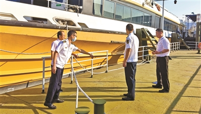 广州海事局工作人员部署应对台风“浪卡”。