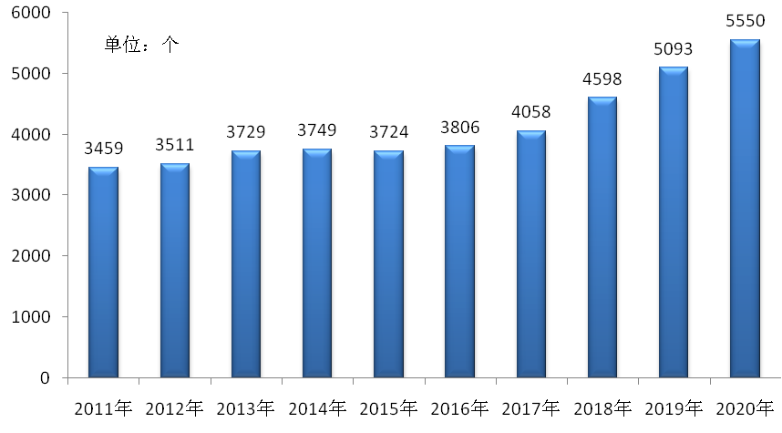 图1 2011-2020年全市医疗卫生机构数