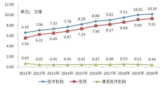 图2 2011-2020年全市医疗机构床位数