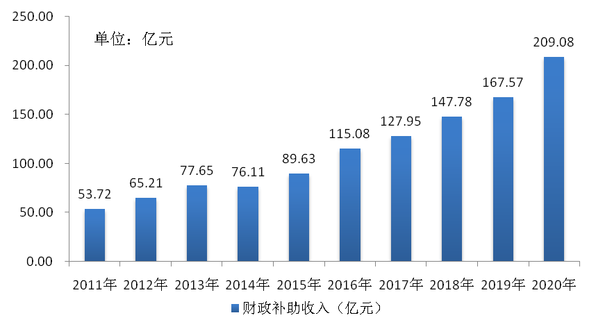 图8 2011-2020年全市医疗卫生机构财政拨款收入(亿元)